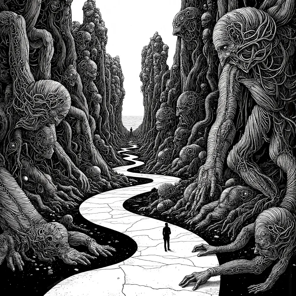 Il difficile percorso della vita di conoscenza di sรฉ e dellโaltro, in una rappresentazione onirica e surreale dalle varie ispirazioni.